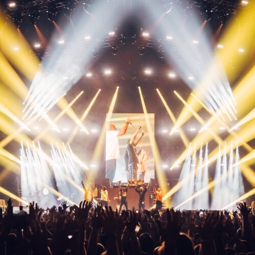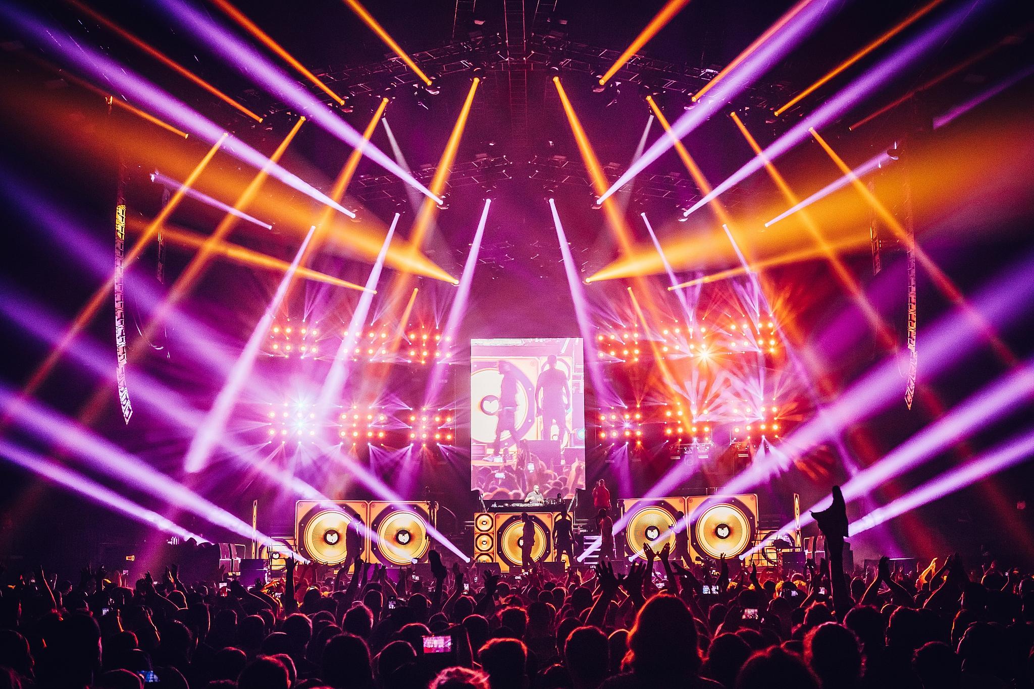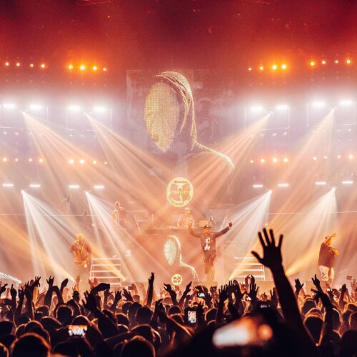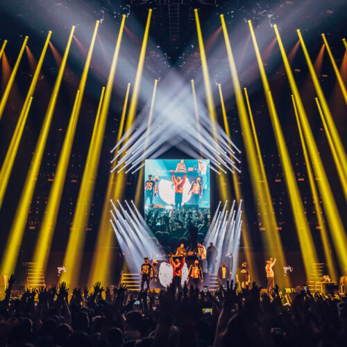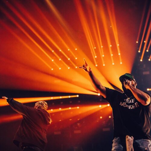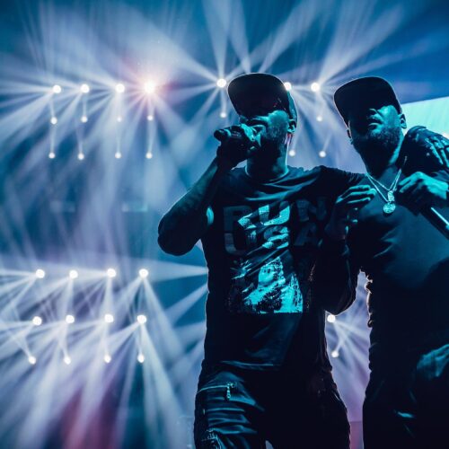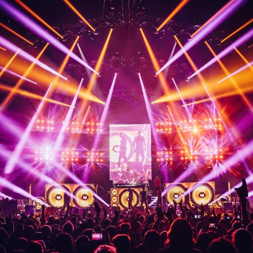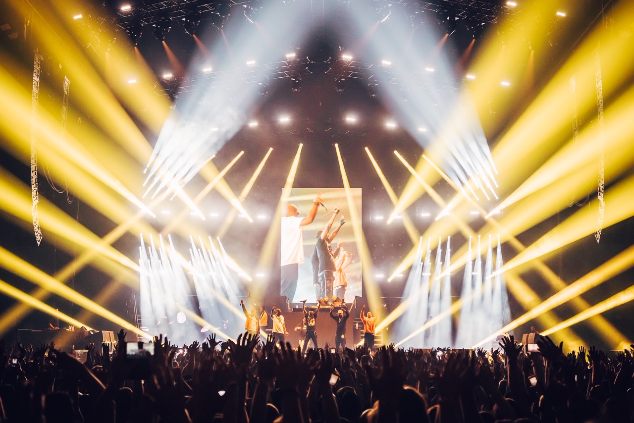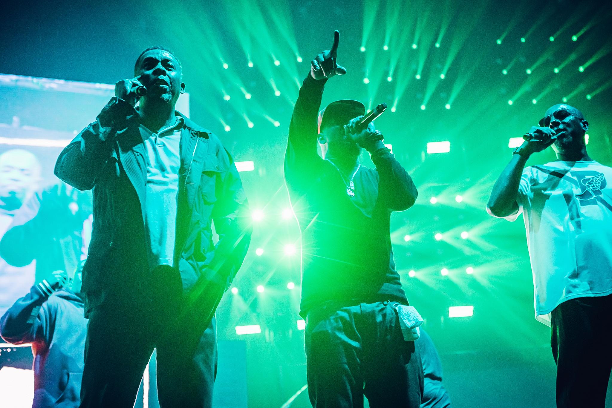 Our 60′ high production design featured a wall of lights, immersive video content and a sprawling multi-level stage layout that played host to Wutang Clan, Public Enemy and De La Soul as they tore it up around Europe for the arena-filling Gods of Rap tour. Complete production + visual + lighting design by us.