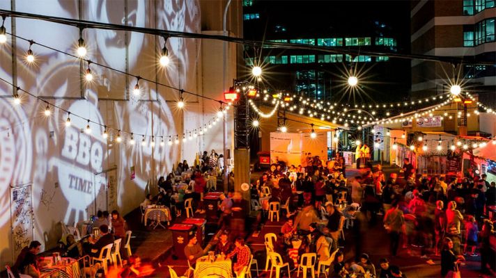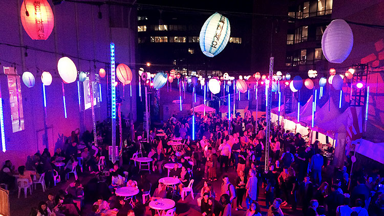 Mandylights has enjoyed working with Parramatta City Council since the first year of their highly successful Parramatta Lanes event, which sees typically unused or under-utilised laneways and alleys of the city transformed into four nights of food, entertainment and artworks. With a production process spread over several months each year, Mandylights works with multiple clients and stakeholders to develop unique, innovative lighting treatments that include carparks, alleys, parklands and rooftops. In recent years, we’ve provided banks of searchlights atop rooftops, gigantic low resolution screens made up of LED pixels across the sides of multi-storey carparks, and groves of hundreds of Chinese and Korean lanterns in hidden alleyways. Mandylights supplies design, equipment, crewing, programming and operation of the festival’s lighting which is installed in centre of a busy central business district each year.