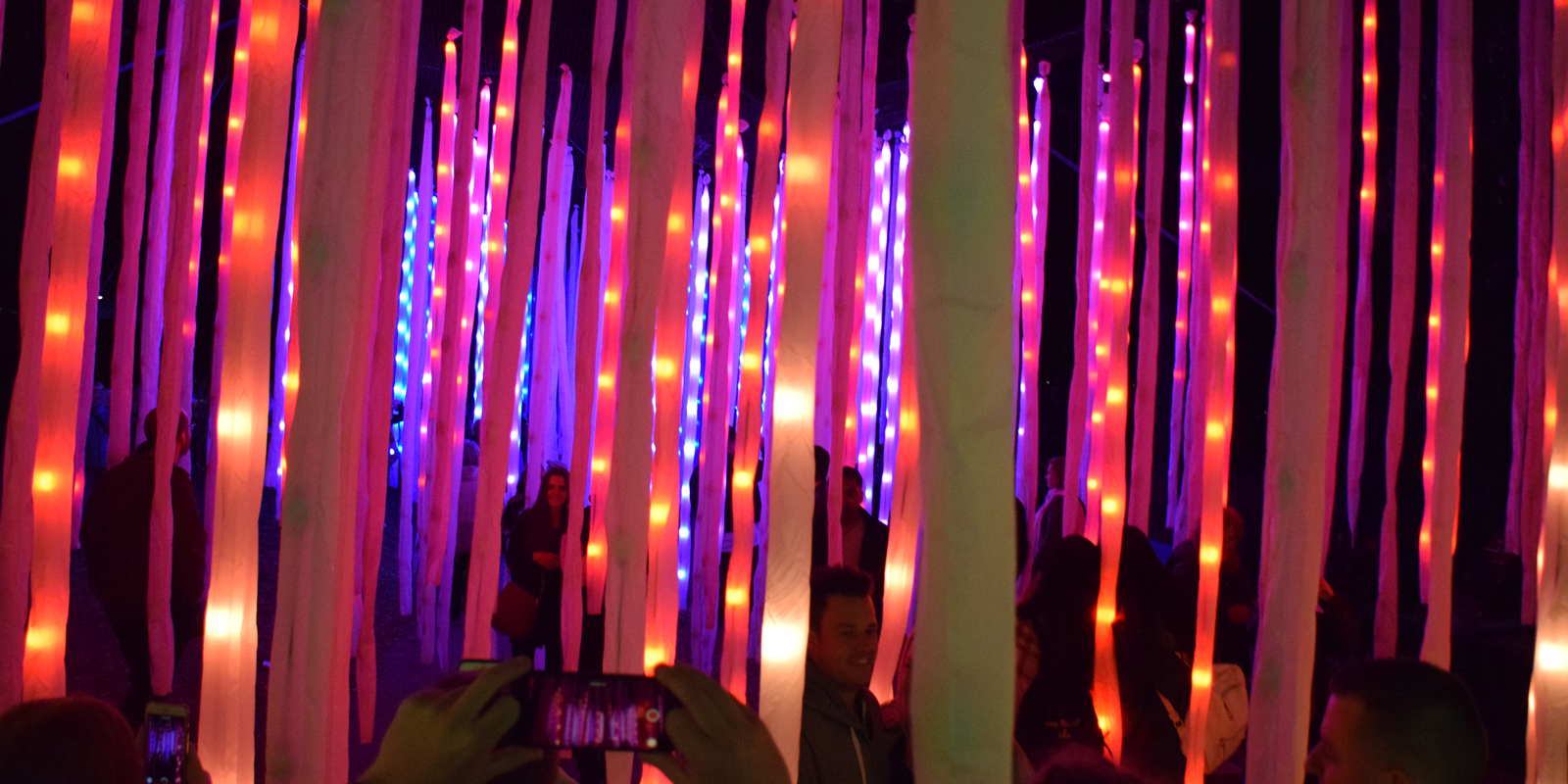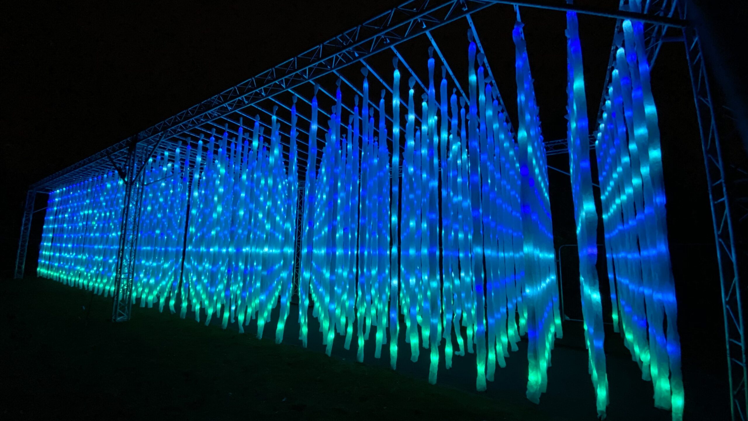 A stunning seventy metre long installation of up to eight thousand LED balls, all contained inside synthetic vines. The entire artwork is 3D mapped and set to a customised soundtrack and rigging can be customised to suit almost any environment.