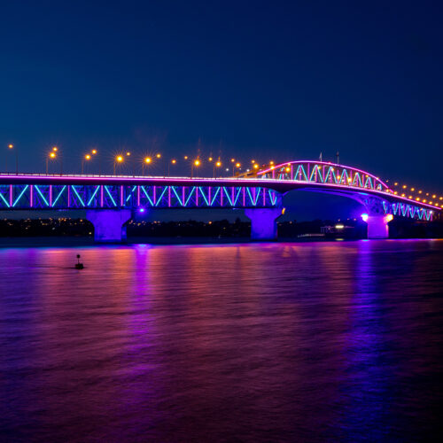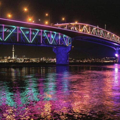Mandylights designed, installed, programmed and continue to maintain the permanent Vector Lights project on the Auckland Harbour Bridge in New Zealand. The landmark project created by Vector, Auckland Transport and Auckland City Council saw Mandylights design a spectacular, kilometre long installation of nearly one hundred thousand LED pixels that accentuate and illuminate the bridge’s unique architecture. The entire bridge is pixel mapped to display innovative content at different times of the year, and is powered entirely by a solar system. One of the largest projects of its kind in the world, the Vector Lights changed the face of Auckland City and represents only the beginning of an exciting smart energy partnership for the city.