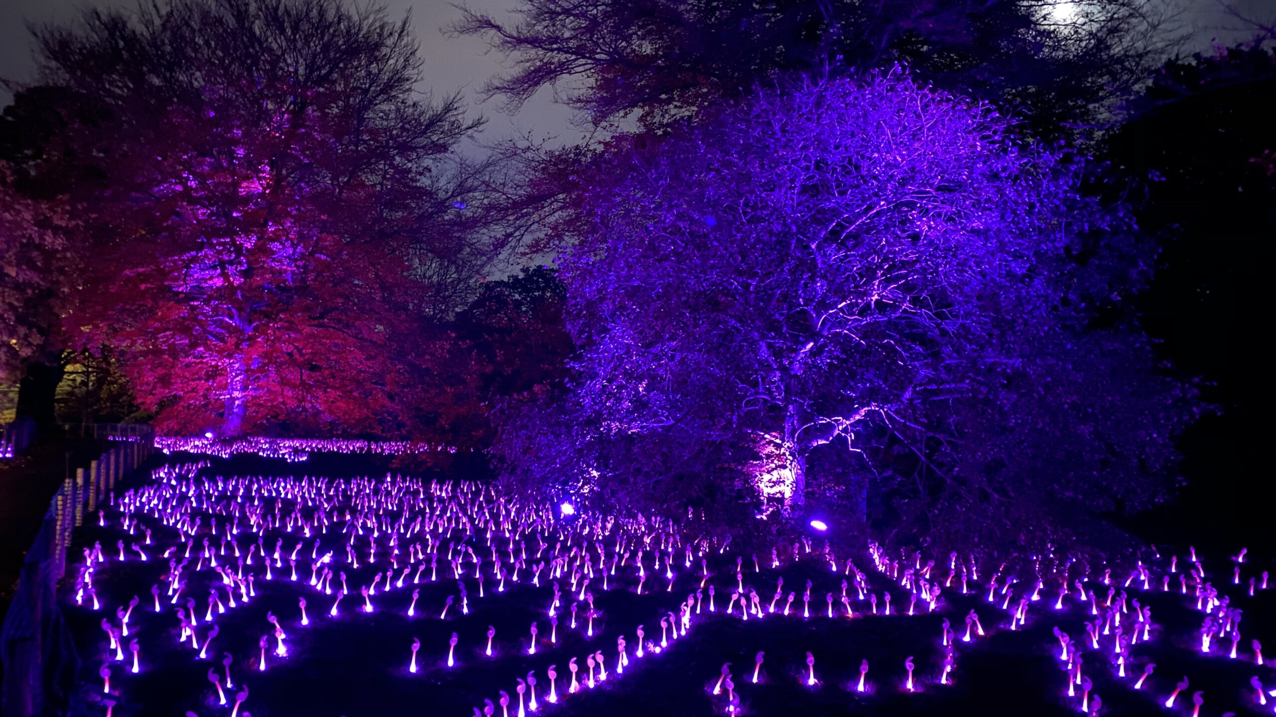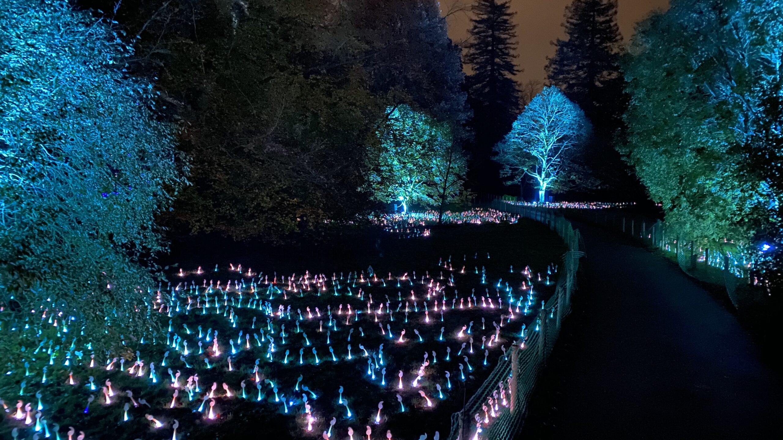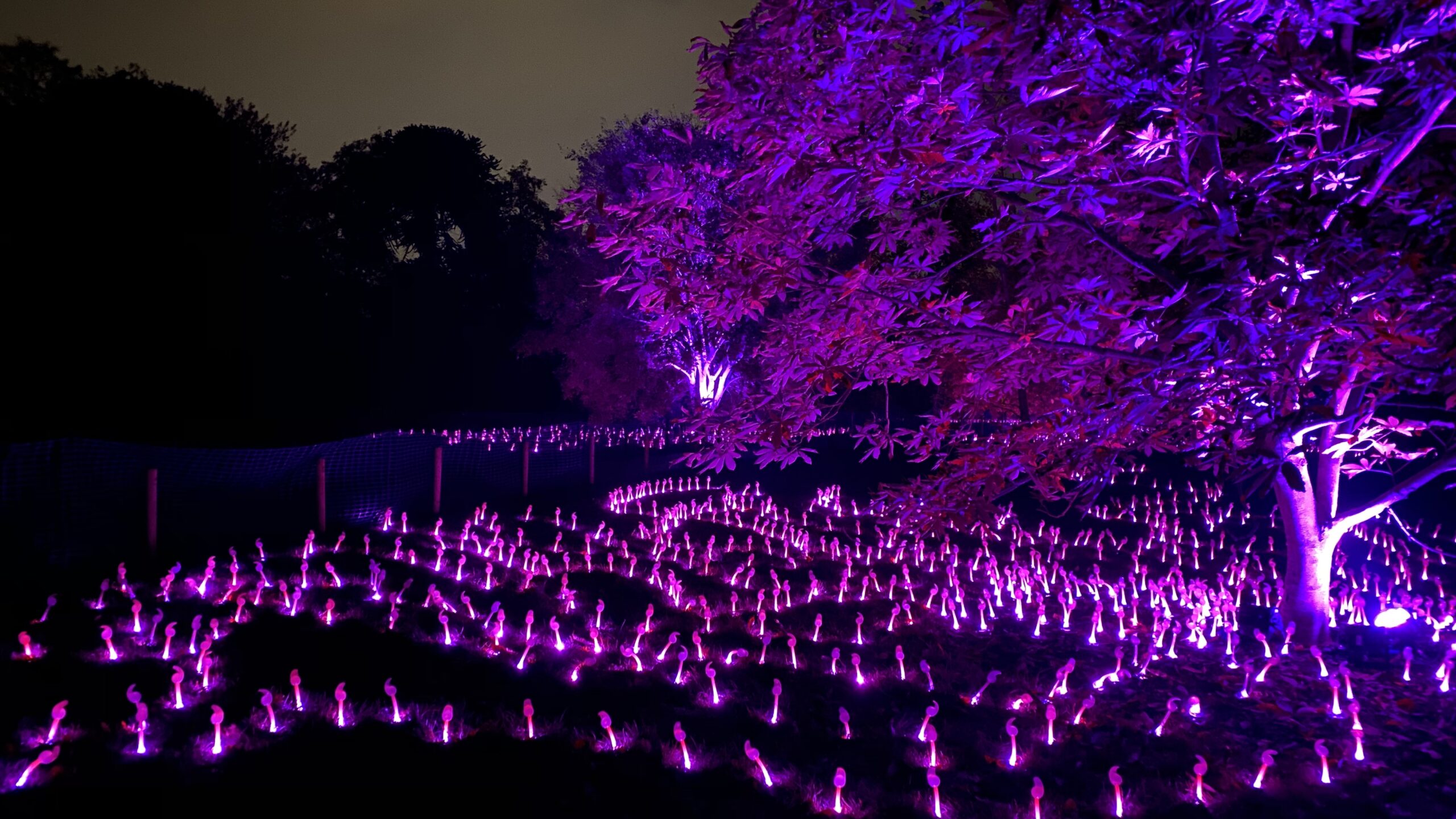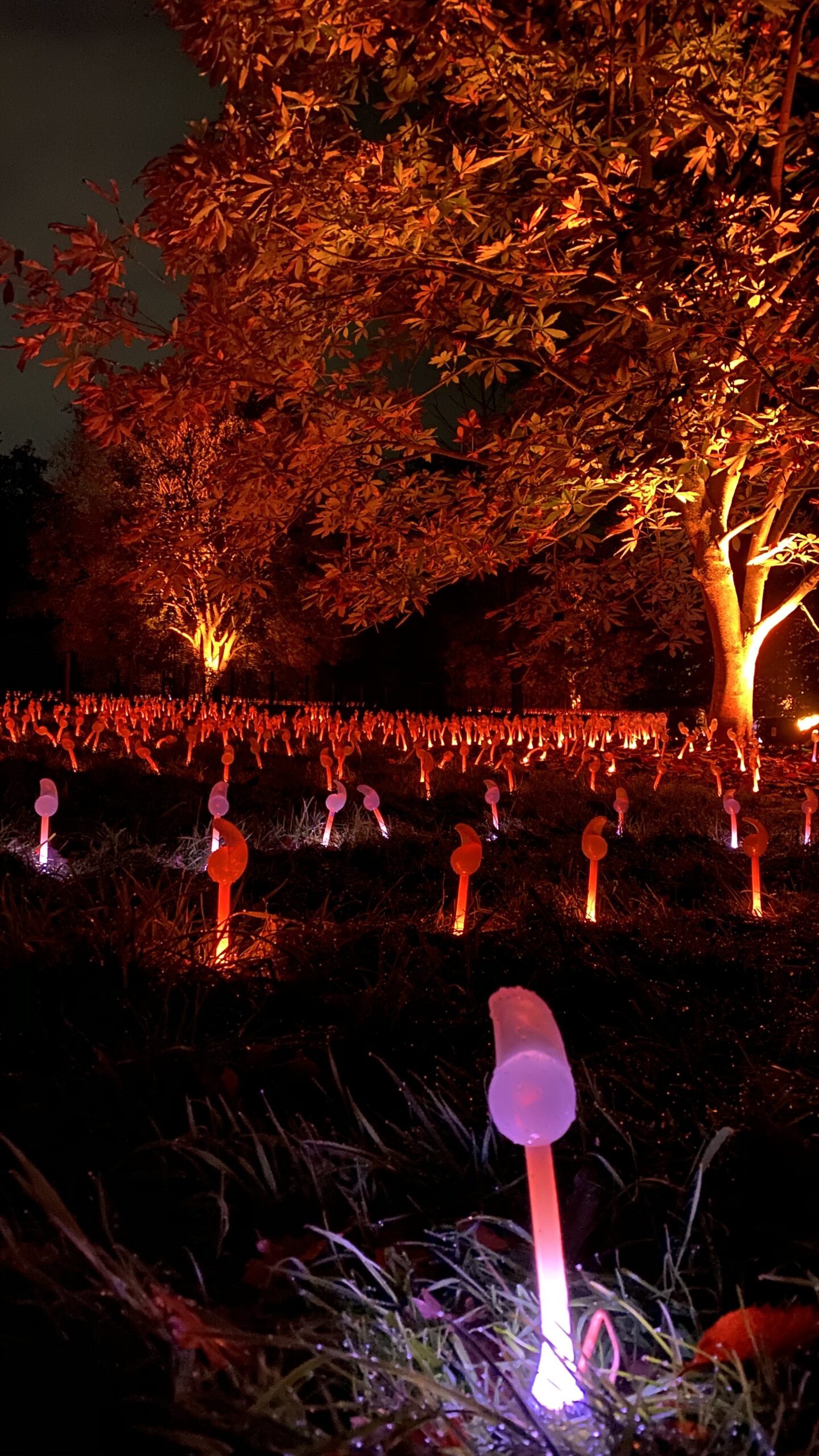 The branches of a sprawling tree provide refuge for a countless number of mysterious, glowing entities known only as the Will o’ the Wisps. In the dark of night, their form is never truly revealed–instead they glow softly, appearing and disappearing seemingly at random. The ‘wisps’ draw their energy from folklore and legends born from every corner of the world: they are known as fairy fire by Welsh travellers, as Aleya by Bengali fisherman, as luces del tesoro in Mexico and as min min lights in Australia. Within the installation the wisps perform individually and reflect their different origins; they appear as devilish displays of red mischief, or elusive soft glowing orbs or burst forth as explosions of vibrant colour. Within the context of the artwork the wisps are a visual metaphor; by constantly appearing and disappearing they represent seemingly impossible-to-reach hopes or goals.